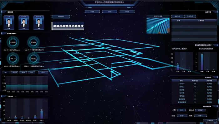 智慧疏散感知平台是用于矿井、隧道施工等危险作业场景的人员疏散救援态势感知。通过现场探测器、视频实时采集传输数据,以及人员GPS定位信息,运用人员智能疏散算法模型实时计算疏散路径,生成智能应急广播指导人员疏散。1:1真实3D模型场景、人员实时定位模型管控危险区域人员信息,一键生成智能应急广播,前端面板即可实现信息管理,进行数据调度。
