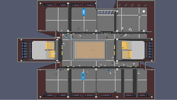 模拟各种人员属性,指定救援人员,如医生、护士对患者展开救援行动,以此来模拟医院火灾的紧急疏散。