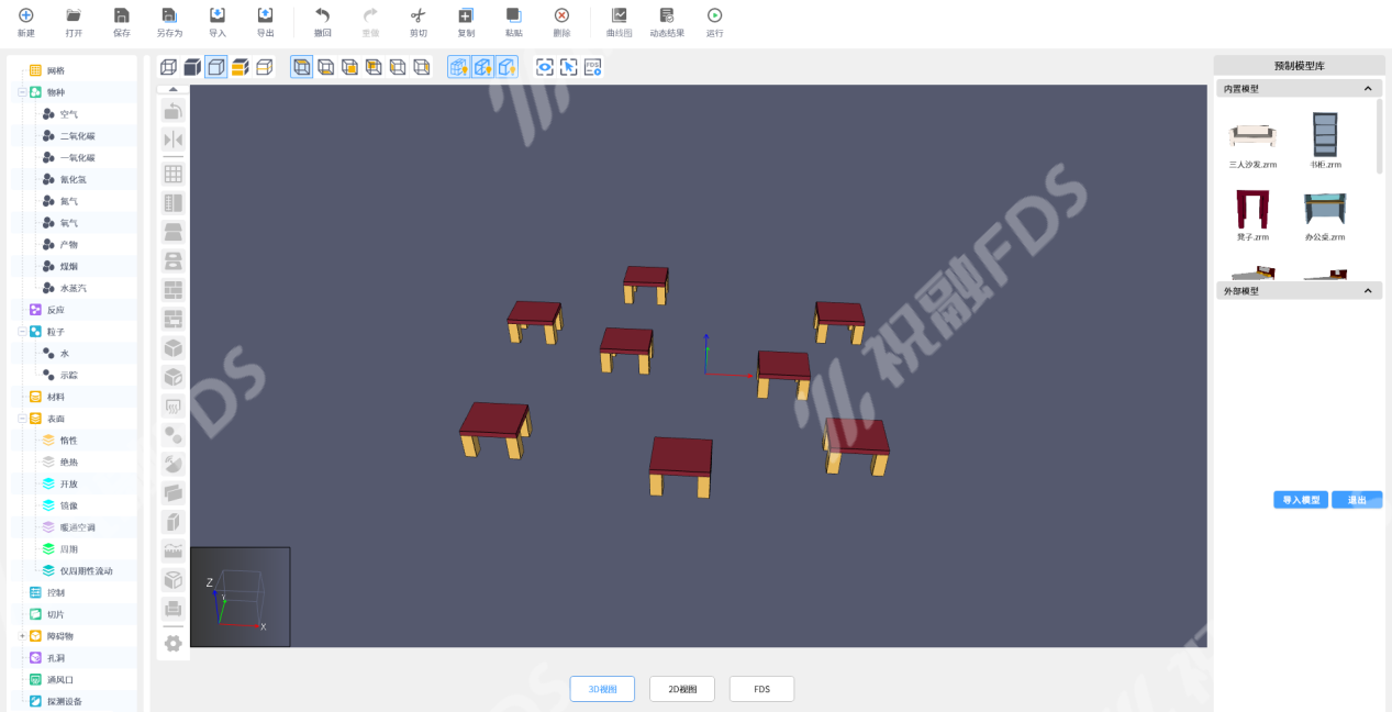 在火灾模拟场景中,我们常常会遇到各种复杂的场景,场景的详细程度直接影响模拟结果的可靠性。祝融虽然无法提供广泛的模型选项,但允许用户将自己通过祝融设计的模型导入预制模型库中,许多模型需要经常重复试用,比如,特定类型的建筑物或特殊的空间布局等。因此,将这些模型保存为预制模型,不仅扩展了模型库的灵活性,还可以显著提高工作效率,避免重复劳动。用户一次建模后在多个项目中重复使用,还保证了模型的一致性和准确性。