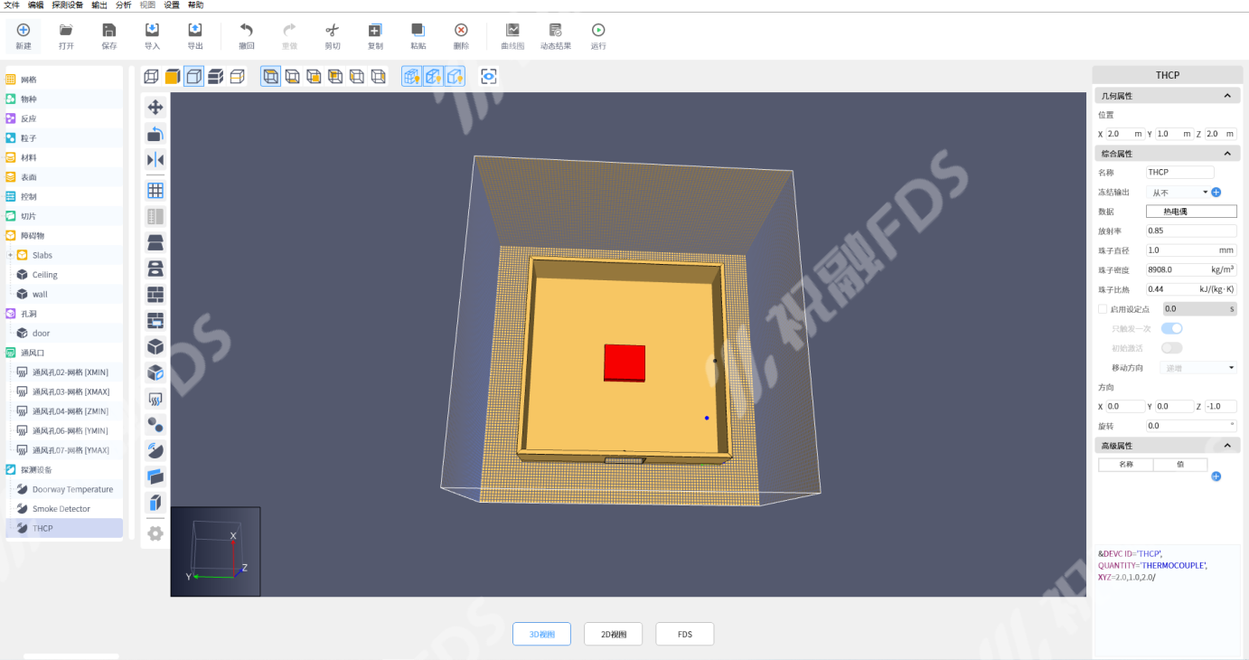 祝融FDS 中有许多可用的输出类型,本教程将介绍常用的输出类型:探测设备。您将学习基本的 FDS 概念,如何在祝融FDS中创建输出,以及如何在结果查看器中查看输出结果。