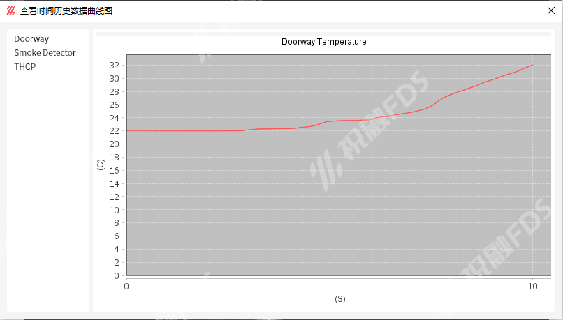 祝融FDS提供了一种方便的方法来查看模型中探测设备的输出数据。默认情况下,FDS 将探测设备数据写入文件my_first_model_devc.csv。祝融FDS解析这个和其他 csv 文件,以提供曲线图。