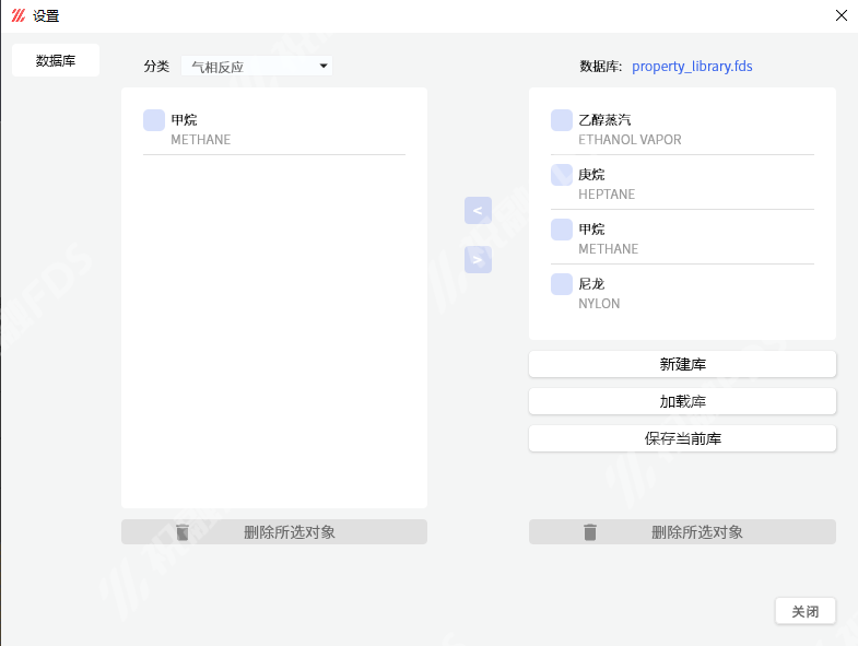 4.创建反应,点击顶部菜单栏中“设置→数据库”,在分类下拉菜单中选择“气相反应”,并选择“甲烷”,如图6所示。